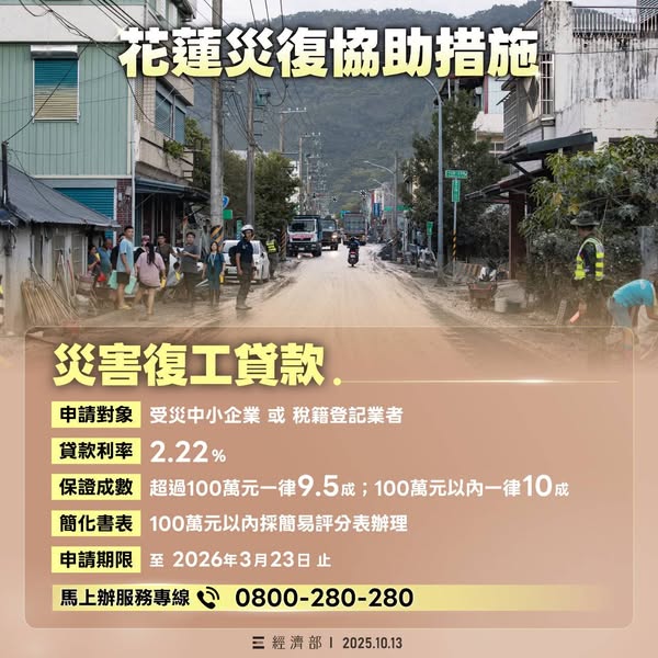 花蓮災後協助措施正式啟動!